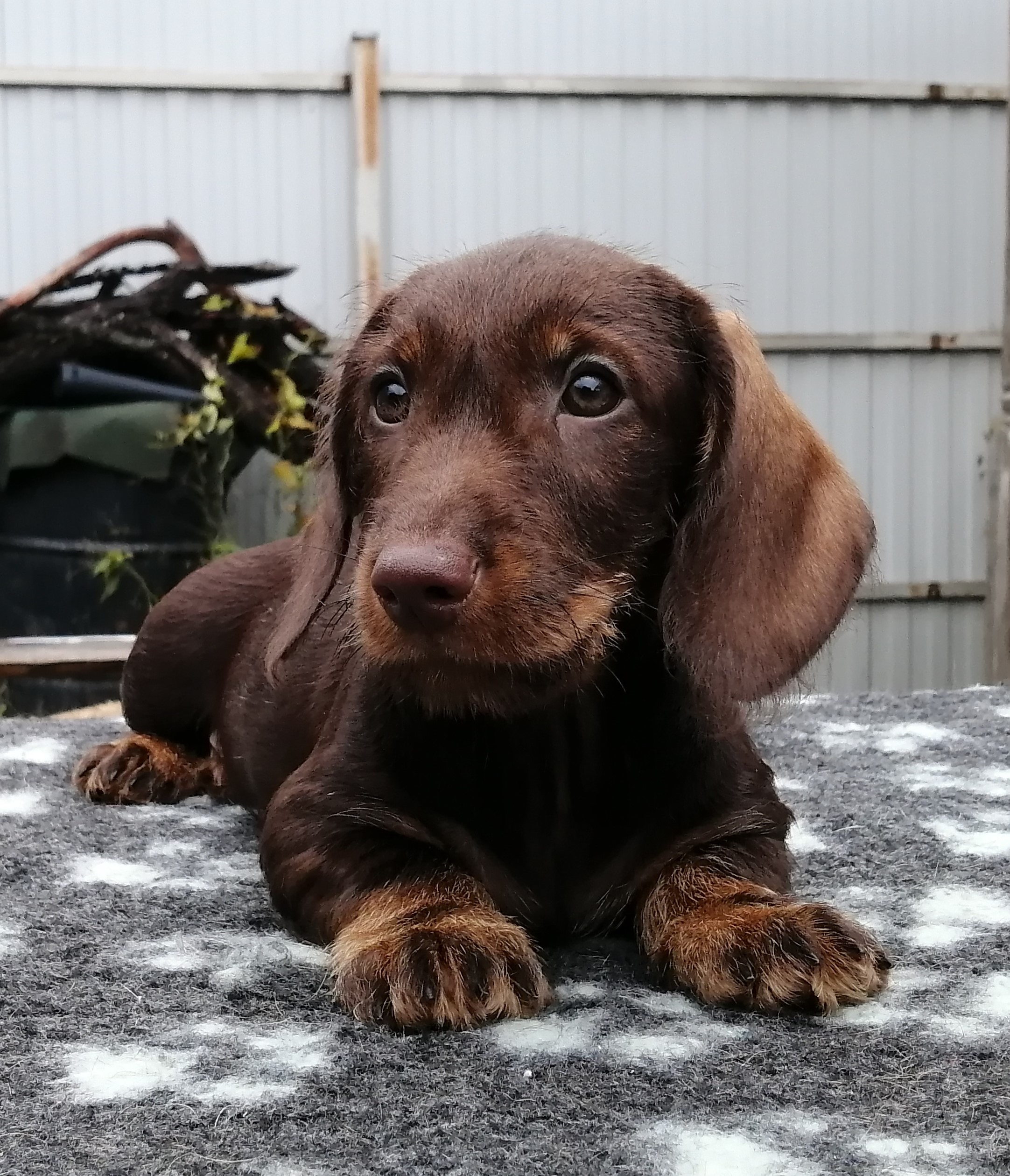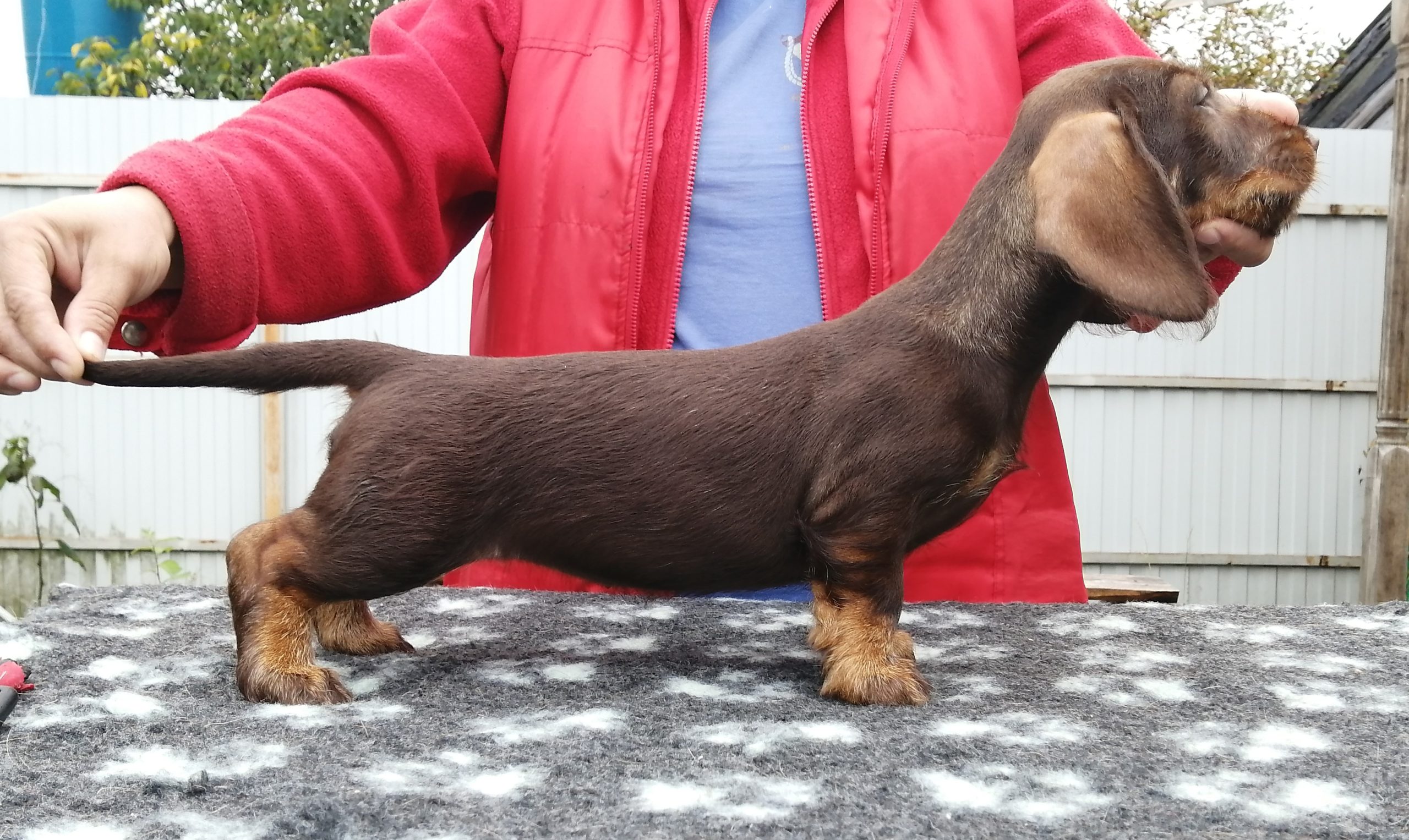 Щенок таксы стандартной жесткошерстной, сука. Окрас коричнево-кабаний. Полностью привита, клеймёна, чипирована. Имеет полный пакет документов РКФ. Отлично выращена, с хорошим характером. Готова к переезду.
