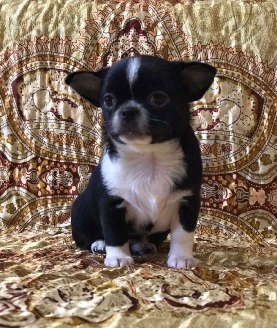 Девочка чихуахуа гладкошерстная. Окрас чёрный с белым. Размер мелкий стандарт. Без брака. Голова яблочком. Хвост серпиком. Подойдёт для разведения. Весь пакет документов. Прививки сделаны по возрасту. Гигиене приучена. Ласковая, контактная. Любит общение с людми. Агрессии к другим животным нет.